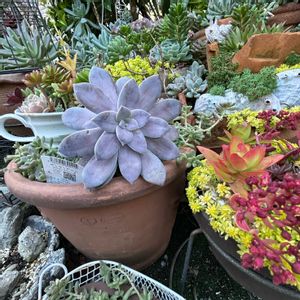こんにちは 昨日の朧月だけの寄せ植えを作り替えました 大部分がグレーですからグリーンをアクセント 何かないかしら? 🌱万年青も多肉のお仲間かも〜 入れてみました🤭 (違っておりました、観葉植物に近いです🙏) 階段を登って降りての時〜 色々と楽しめるように三段重ねに🪜 一年後はどんな風に成長してるかしら🎶 1️⃣ 上から 階段を登った時 2️⃣ 斜め横 階段に近づいた時 3️⃣ 少し離れて通りから バランスが‥💦 後でお直し致します
