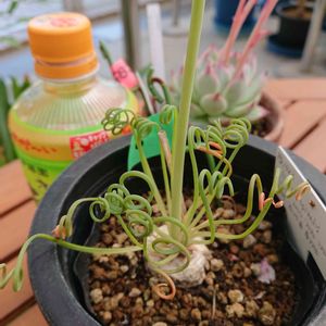 アルブカ スピタリス ユリ科 アルブカ属 南アフリカ 🐒葉っぱクルン! スリズル シズルと書いあると思う(字がちっちゃい)👀💦 ゆめねつ多肉植物展