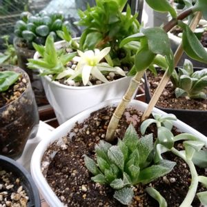 🌵💎✨️ベヌスタ系?は苦手だ🙊💦 ハオルチア うぶ毛のあるタイプ ブルーリボンとオバケ(グラパラリーフ朧月)をお友達作戦やってみる「効果は不明?」🏷️ど〜なる多肉ちゃん🧙♀️🔥🌵 🚿🐒「枯れたら許さん」 魔女っこリーダーの名言である!✌