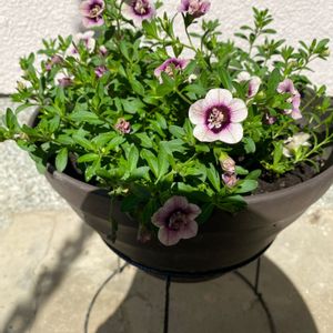 連投失礼します🙏 さきほど投稿した カリブラコア ホーリースモークと同期の ミリオンベル プチホイップ ラムレーズンです。 今年は、梅雨の時期から元気が無かったので 思い切って株元付近からバッサリとカット✂️して リフレッシュさせました。 なので、夏は全く咲きませんでしたが 元気を取り戻して 咲き始めてくれました😊 同じく3度目の冬越しチャレンジになりますが 特に心配はしてません😅