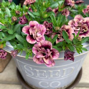 コンバンハ☔️ 先日植えました夏の寄せ植えです♪ 4月に買っていたのにずーっと待機していた(ごめんね)ペチュニア モンローウォーク シルキーラテに合わせて大人っぽい色の寄せ植えにしようと思って😙 シルキーラテがのびのびからの切り戻しからお花が復活しましてやっとそれっぽくなりました💗 今度はミリオンベルプチホイップ ラムレーズンを切り戻しですね〜 なかなか咲き揃わないなぁ〜(初心者あるある?) これ、実は先日、貴重な晴れ間に陽当たりのいい場所で日光浴させていたところ、旦那に車でひっかけられてしまいまして😭 鉢は素焼きだったので、割れてしまいましたが、植物はみんな無事そうだったので、あいていた鉢にもう一度植えなおしました 大丈夫そうですね✨よかったぁ〜 いつもと違う場所に置いていた私が悪いんですけど‥ 皆様もお気をつけくださいね〜😢
