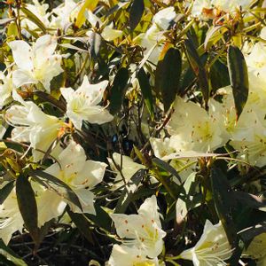 初めて見ました🤩クリーム色のヒカゲツツジです✨✨ 日向でも咲きます! 別名・サワテラシ(沢照らし) 河岸の岩場に生えることからの名 葉っぱ🌿はシャクナゲに似ています。