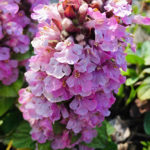 *アジュガ・レプタンスピンク* 紫のアジュガの隣りに数本だけ、 咲いていました。😍💕 ピンクは数が少ない、と聞きました。 たしかに余り見かけないなぁ…(⌒-⌒; )