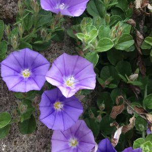 😨えっ!?朝顔がもう咲いてる…❗️❓ イヤイヤ違いますね!😥 アナタは誰かなぁ?!💜 ⭐️「コンボルブルス」と教えていただき ました。和名・セイヨウヒルガオ