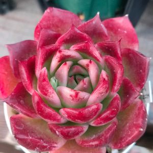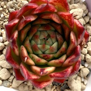 【エケベリア・エリザベス👑】 目が覚めるような赤❣️ 今冬は、去年よりも厳しめに育てています。そのせいか、キュッと締まって色づきもいいです😊 🍏