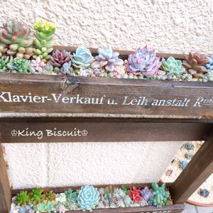 水崎園芸さんからお迎えした 多肉ベンチ棚とお揃いのラダーに やっと寄せ植えしました🤗💕 どう寄せようかと悩みながら🤔 気の向くままに〜♫ 前picの多肉リースと同時進行で 寄せました☺️ 出来上がってパシャパシャしてみると 下段のココヤシファイバーにたまたま♡ができてて ほっこり嬉しい気持ちになりました🥰