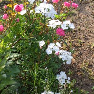 花茎が長く頼りなさそうに見える、リクニスホワイトロビン、切り花に便利です。