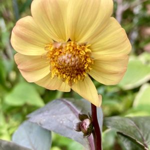玄関ポーチに ダリア 夏色クレヨン 咲きました。