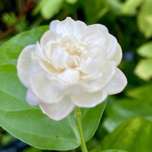 アラビアン・ジャスミン(八重咲き茉莉花、亜熱帯植物)。庭に芳香を漂わせ、猛暑の中、元気に咲いています