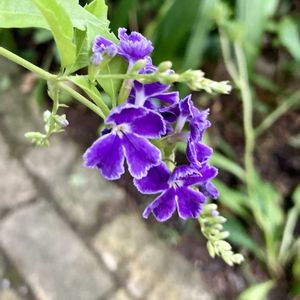 デュランタ宝塚が咲き始めました。昨年、1.5メートルまで育ったデュランタを寒さに当ててしまい枯らし、新たに買い求めた2代目