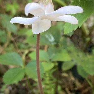 一昨日投稿した 原種シクラメン ヘデリフォリウム が咲きました。 暑さのためか1日でしぼんでしまいました