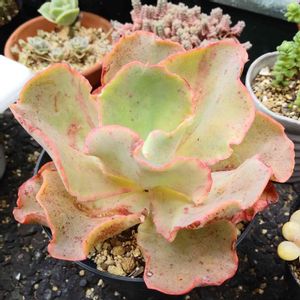 すごい雨☔ 暗くてピントが合わない😖 『古紫』 黒さがカッコいいんだけど、水いっぱい吸ってみどりん。 親株一鉢しかなかったから増やしたくて今年の初めくらいかな?葉挿しをして一枚の葉から三頭出てここまで育ってくれました😃 親株は…というと夏に弱ったけど何とか乗り越え、これからという時期になり急に☆になりました。 なので、この子たちに頑張ってもらわねば…💦