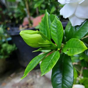 一重のクチナシよりは ふっくらとした蕾 徐々に一枚一枚拡げて開き 全ての花弁を開いた時 真っ白なパーティードレスが完成するよ 八重梔子❄
