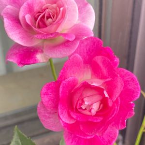 シェエザラードとピンクアイスバーグの2番花🌹 可愛いけどサイズ小さい目、これはハダニにやられて元気がなくなったからかしら。 うちのバルコニーは黒点病より、ハダニとうどん粉病が問題みたい。乾燥と湿気に関係するから、これ両極端に思われるけど両方現れてます😱 うどん粉病になったのにはハダニは付いてはないから一度に両方はないみたい。去年、ハダニが付いた薔薇に今年はうどん粉が🥲 来年は5月の熱風がふくころには葉水を心がけてみようかな❣️