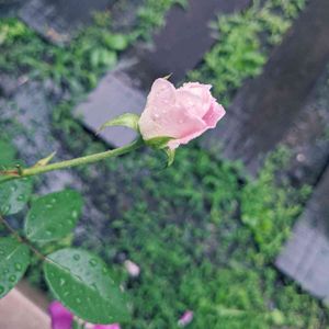 バルコニーで咲いた薔薇をカットしたバードバスへ💕 いきなり咲き過ぎまで行くので翌日にはカット✂️ 真ん中はディスタントドラムス、アプリコット色から薄ピンク色に変化しました。周りはピンクアイスバーグ。両方共、型は小さく、色は薄目です💦
