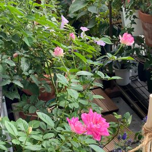 ピンクアイスバーグの横顔。 咲きかけの他にまだ、蕾もありますが、花はこんな大きさで良いものか?🤔 今年、新苗の一年生だから小さめ? 秋だから? 春見た花はもうちょっと大きかったように思います。 来年は花も大きくなるのかな? 薔薇、知識無しで色々疑問だらけ❣️😥