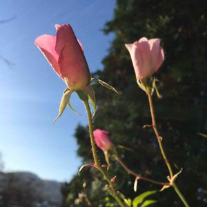 霜が降りた朝 寒くなると、バラはなかなか咲けません 昼間はお日様が出ているのに 一週間程前から変わりなしです😓 咲いたお花は長持ちしますね😉