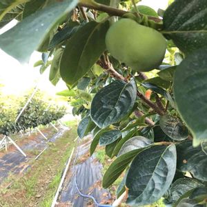 柿 果樹園には柿もあります。 毎日いい勢いで落果しています。 秋まで実が着いてるかな😅 繁盛期になったから、遊ぶ時間がなくなった。地獄の日々だけど、半年後の遠征費を稼ぐのだ❗️