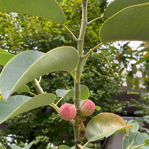 雨あがりの青空の下 風が吹くと 霧のように🌁水飛沫が舞い落ちて 森は幻想的でした。 この、名前がわからなかった実も、頬を染めてふっくらしてきました。 今年の3月3日にアップしたお花を思い出しました。きたていさんより、「ミヤマガンショウ」と教えていただきました。 木蓮や泰山木の仲間で、白い大きなお花は圧巻でした。 お花の咲く頃も楽しみです💕♪