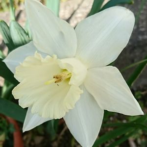 先日撮った喇叭水仙、黄色かった副花冠が真っ白に マウントフットで間違いなさそうですね。 2枚目は先日の雨で汚れてしまってますね…