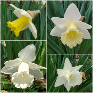 カワイイ…✨🤍💛 1)ピンクチャーム 2)ペチコートスイセン 3)ニホンスイセン 4)マウントフット 5)テータテート 別名:雪中花 英名:Narcissus, Daffodil