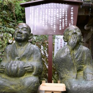 葛城古道にて ①一言主神社のボケ除け至福の像 可愛らしい像についパチリ! 数え唄の中に「つとめてカボチャを食べて」と書かれてる これからはカボチャをたくさん食べるようにしよぅ😄 頭を撫でて来なかったのは残念😅 ②境内のクコの花 ナス科 落葉低木 枝にトゲがある 茎から出ている葉の付け根にぶら下がるように花が咲く 初めて見る?変わった形 麻婆豆腐や薬膳カレーに市販の干したクコの実を入れて ます ③マルバルコウソウ ヒルガオ科 蔓性一年草 ルコウソウの仲間で葉が丸い 繁殖力が強い ④ヤブツルアズキ マメ科 蔓性一年草 小豆の原種と言われている 食べることも出来る 会ってみたかった子です。 ⑤稲と彼岸花