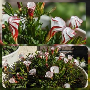 オキザリス♪ パーシーカラー♪ 紅色の縁どりが素敵です✨✨✨🥰♥️🎶 球根5個から新芽が5本🌱 それぞれのペースで生長してようやくお花が咲き始めました🥹💞 🏷️ちっちゃいものクラブに参加させてください🎶