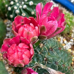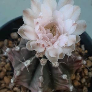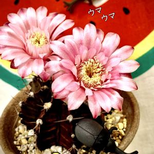 暑い日が続いていますね… 何げに梅雨明けし…我が街は梅雨らしい雨がほとんど降っていません。空梅雨が多いです。 そんな中、小さなギムノカリキウムが花盛りです♪ 春先から雨ざらしにしてお世話をサボっておりましたのに…でも少量の肥料をあげていて良かったです。 白いお花は「瑞雲丸」 ピンクのお花は「牡丹玉」 とっても可愛いです😍蕾がまだあるのでしばらくは楽しめそうです♪