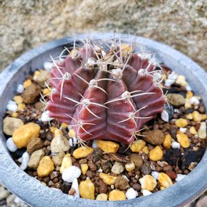 ギムノカリキウム 牡丹玉錦。 寒い日が続くので、差し色で。。。 冬は温かみのある赤い植物が良いですね❤️