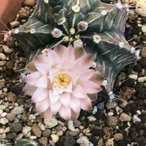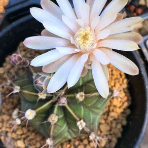 おはようございます☀ サボテン🌵ギムノカリキウム属の花が咲きました🌸 がんばれ西日本🇯🇵 皆さまの笑顔が戻りますように😊 追記 ダイソー産@牡丹玉