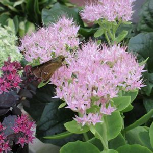 長い間綺麗に咲き続けてくれています。多肉の葉も透き通るようなグリーン。タグに名前が書いていず、ある方のブログにこのピンクの花もパープルフェイスと書かれていたのでタグに名前を付けました。毎日イチモンジセセリがお食事に来ます♡