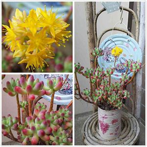 多肉歴13年⚠ 初めて咲いた🌼🌼 真っ黄色何ですね😄 喜んで良いのやら! 即カットしました😔