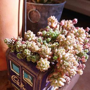 こんにちは~✨✨✨ 昨日からお天気復活で、 日光浴中のキャンベル集団🥫🥫 我が家の保険株の多くは、リサイクルのキャンベルスープ缶です😄 スリムサイズで、収納移動に便利です🎶 若緑は、夏越後仕立て直して復活してきました。トルツオーサムには、あと一踏ん張り寒くなる前に頑張ってもらいたい🙏 ブラウンの缶は、3年目位の茜の塔何ですが。。半カリカリの2鉢を昨夜解体していて、3鉢にしてみました。なんで鉢、増やしたのか🤔