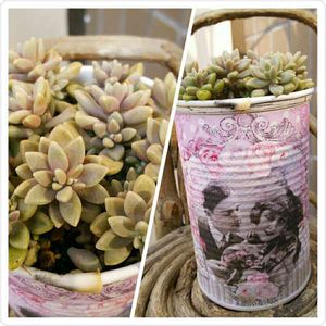 バレンタイン🍫チョコ🍫は、自分へのご褒美で早くも胃袋に……🍫 多肉で毎年恒例のリメイク缶 アンティークで如何でしょうか?🍫🍷