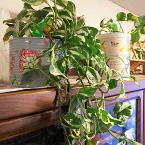 リビング 食器棚の上 このポトスが一番元気
