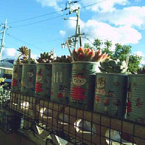 塗り塗り貼り貼り夜なべをして完成😙だけど植えて増やせない😟 秋までお預け😑 前後3缶です
