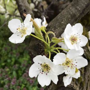 こんにちは☀️ 朝晩は寒いのにまた急に気温が上がりました🌞 寒暖差があって身体がついて行かないです💦 今日のお花 「梨の花」 これは鳥取名産の20世紀の梨のお花です。 今年はいつもより開花が遅いと梨農家👩🌾さんが言ってました。 これから大忙しだそうです。 美味しくなあれって願い🌟🙏 農家さんに感謝😊