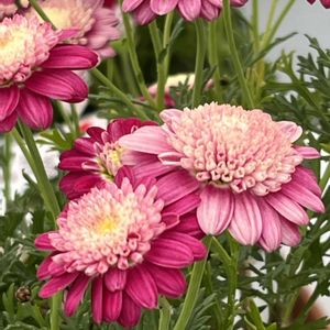 寒〜い日が続きますが、我が家のマーガレットは、年末年始辺りから咲き始めて、ずーっと元気に咲いています💕 早くもピークを過ぎた株もいます♡⸝⸝ ❤︎ 1枚目…全員集合❣️ ❤︎ 2枚目…PWフランボワーズスフレ🩷2年目 PWシンプリールコーラル🌸 挿し芽2年目 ❤︎ 3枚目…サントリーボンザマーガレット サンセットオレンジ🍊 去年10月お迎え🪴株幅68cmあり、新入りさんなのに1番大きいです!! 1回目のピークを過ぎて、そろそろカットしようかな✂️ ❤︎ 4枚目…PWマーマレードスフレ💛 2年目 1ヶ月以上満開を楽しんだので、先日、咲いてるお花だけカットしました✂️小さな蕾が沢山控えています𖤣𖥧𖡼.𖤣𖥧 マーガレット達は、日中はベランダで、夜間は室内へ移動。 この作業ももう少しの辛抱です♡⸝⸝ 春はそこまで来てるよね🌷🌱🌸🌿🌼☘️🌈•*¨*•.¸¸♬︎♪♪