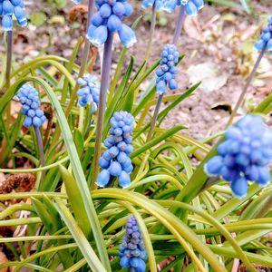 おなじみのムスカリちゃん達もイキイキ✨ あちこちから出てくるのは、 この花がきっと種を飛ばすんですね~☺ 見つけては、はぐれをまとめたりしてます😅