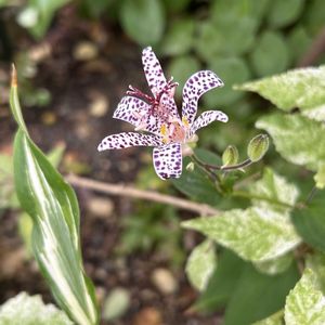 今日のお花 ホトトギス No2 ①先日山野草展で頂いた白花ホトトギス 清楚な白花が欲しかったので嬉しい💕 ②今庭で咲くチャボホトトギス