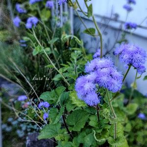 今朝は久しぶりに水やりから解放~✨除湿器に溜まった水も植物にあげずに済みました🤭 今、一番涼しげに咲いてるのはアゲラタム💙高性の見切り品の子😁