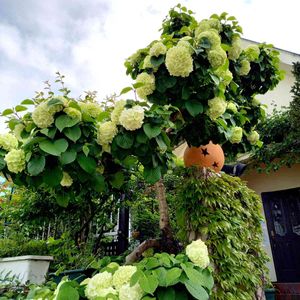 こんばんは✨ 八重咲きのカシワバアジサイ💚 イケメン君のお花やさんの店先で~真ん中のグリーン💚がとても爽やか💚