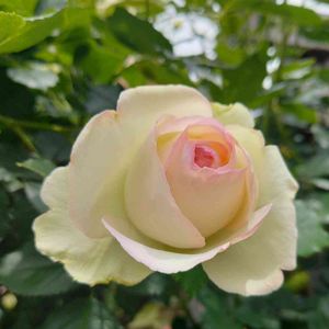 今日出会った薔薇🌹その2 知り合いのお庭に咲いていた うっすらピンクの縁が美しい💕 このくらいの咲き加減、なんて素敵なんでしょう🥰