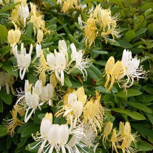スイカズラ🌼🍀 数日前にパチリ📷 今年はお花がとても綺麗に沢山咲いてます…辺りが芳しい~🌼 黄色~白くなるんですね🎵 ミッキーのお友達のデージーのまつ毛みたいにくるりんしてて可愛いお花❣️