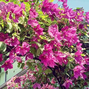 近くのフレンチ🇫🇷のお店で… ブーゲンビリアと思って近づいたらクレマチス🌺でした❣️ アーチ状に仕立ててあり、見事な咲きっぷり💕💕💕 とっても綺麗~🥰