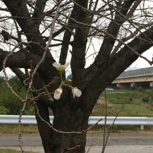 季節外れの桜が咲いてました🌸 アメシロに葉っぱを全部食べられた上寒暖差の激しさに春になったと勘違いしたのかもしれません😆
