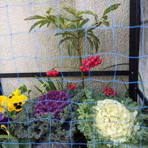 こんばんは🙇🌌 道すがら見た❗民家の玄関先の花壇に綺麗に植えられた🏵🌼ハボタン🏵🌼と🌿万両🌿と鳥よけのネット 🏠家の近所の👟ウオーキング🚶より