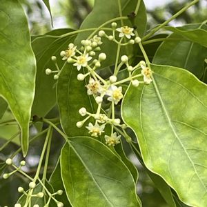 ♪♪♪ こんにちは☀️ ①②③④⑤ 小さな花が沢山ฺ *゚✲ฺ *゚✲ฺ 今年5月に撮ってマシタ✨ *🌲゚✲ฺ(っ'ヮ'c)<*゚✲ฺ *゚✲ฺ *゚✲ฺ クスノキ ・『古事記』では「楠」、『日本書紀』では「樟」 ・英名は camphor tree(カンフルの木) ・花期は初夏(5–6月) ・果実は秋(11–12月) →淡緑色から光沢がある黒紫色に。 ・花言葉は「芳香」 →楠の葉や木から得られる樟脳の香りに由来。 →樟脳は防虫剤や香料として利用される