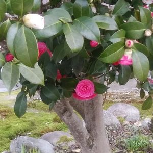 右上は一本の木に白と赤紫の2色 左下も一本の木ですが何色もの色が咲いています😳⁉️ 2本とも大きな木で色とりどりで綺麗です🌳🤗💕