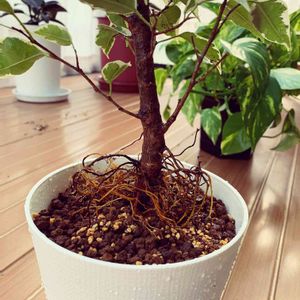フィカス系。ベンジャミンの斑入り🌿めっちゃステキ🥰 少し根上り風にしてみた。